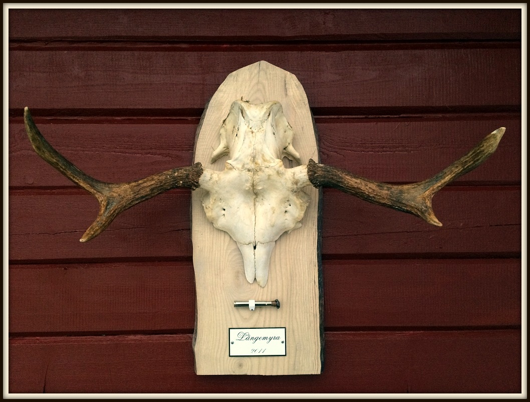 Under 2011 års älgjakt fällde jag en älgtjur. Och nu har hornen äntligen kommit upp på väggen i uterummet på gårn. Jag tog en ekbit som jag oljade och beställde en liten skylt med årtal och plats där älgen blev fälld.