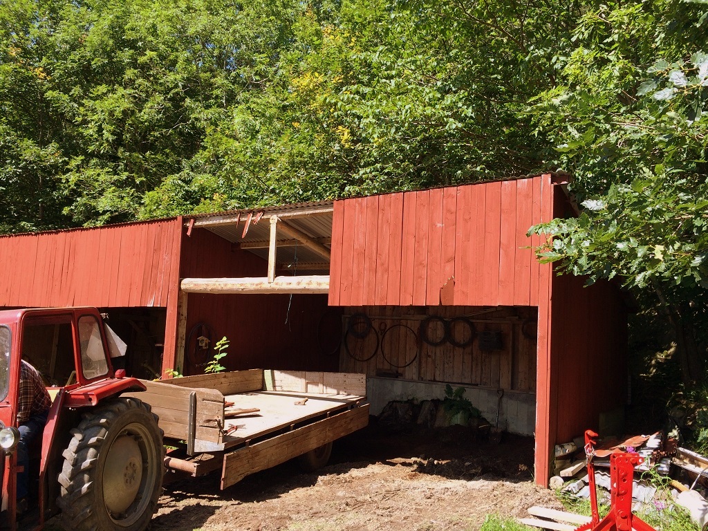-satt hängrännor och stuprör runt ladan