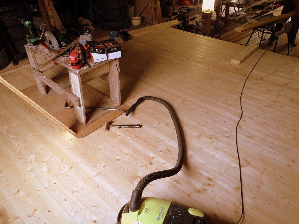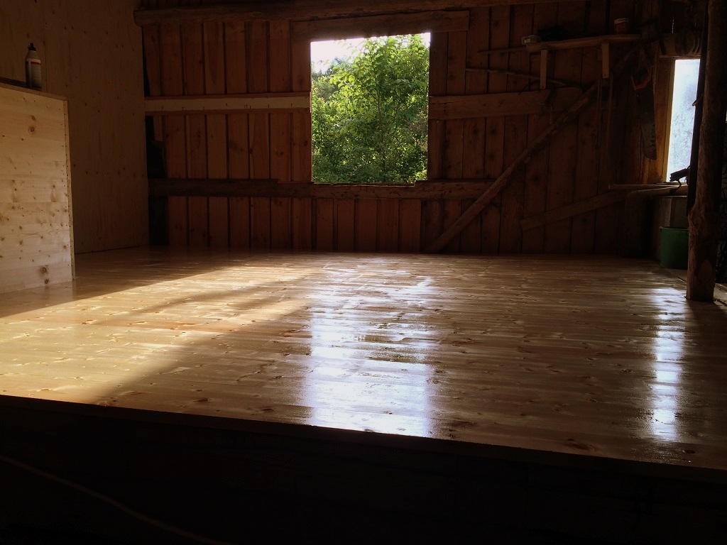 –byta golvet på spannmålsrännet, bygga om nergången till stallet