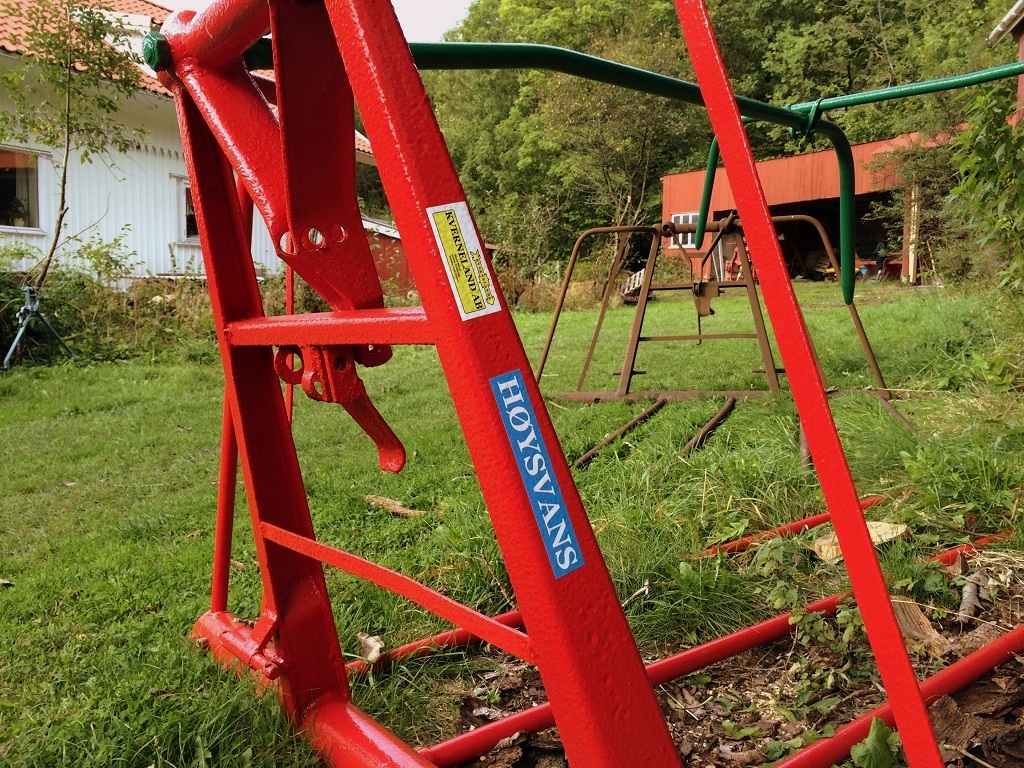 –renoverat och målat slåttermaskinen