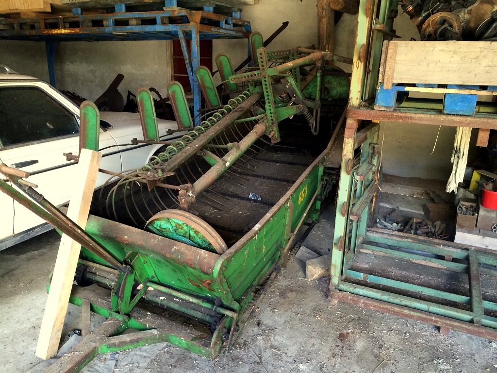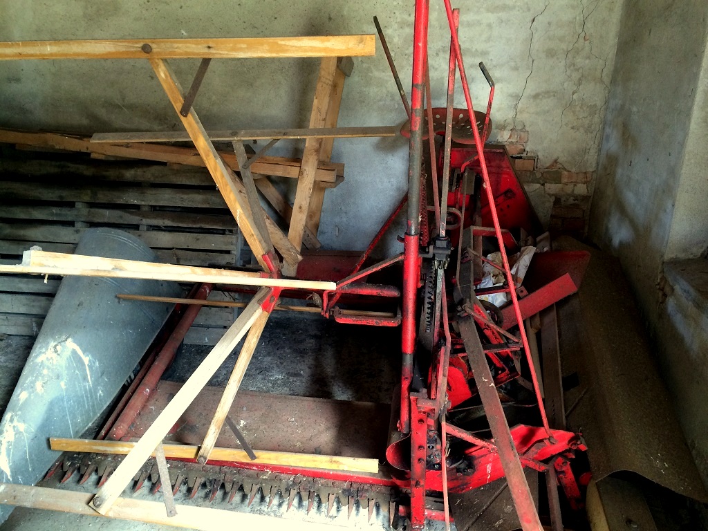 Tröskverket – just det ja! Det fanns ett riktigt fint tröskverk på gården. Tyvärr var det inte till salu. Än. Perfekt storlek, ungefär fyra meter långt, två meter högt. Såg helt nytt ut. Får fråga igen.
