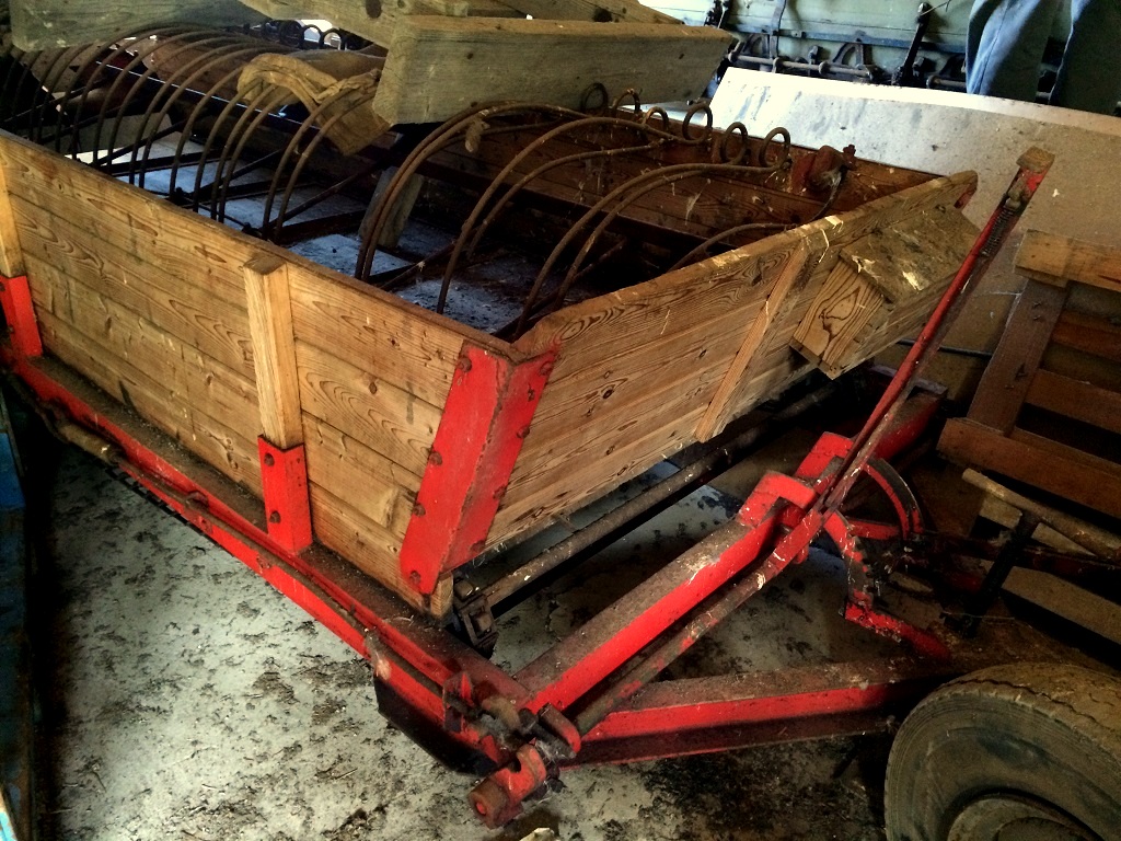 Gödselspridare – Wiggos idé efter att jag klagat över att ha blivit stel i ryggen efter att ha gjort rent i hönshuset och kört bort en sju-åtta-nio jordskopor med gammalt strö/halm/hö och spridit ut medelst grep på åkrarna. Denna modellen bör lastas för hand så att gödseln blir luftig. Inga problem, kommer ändå inte in med traktorn i hönshuset.