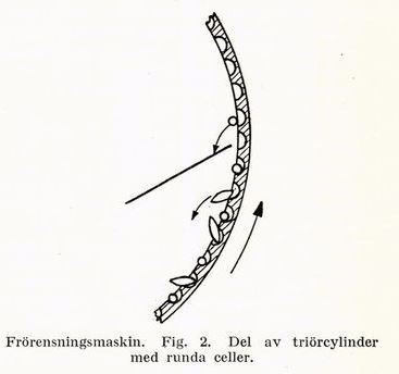 Man ville genom rensning och sortering åstadkomma ett fullt likformigt parti. För att underlätta rensningen efter här nämnda principer konstruerade man kombinerade maskiner, som innehöll både fläkt- och sållapparat samt trior.