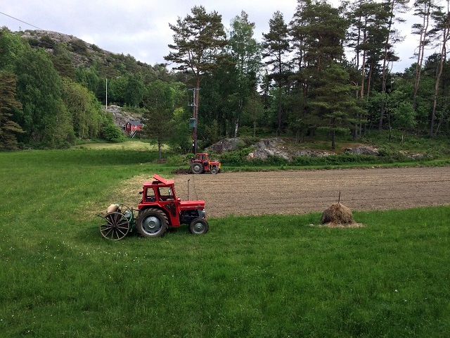 Söndagen ägnades åt att göra klart vår’n. Jag och Holger åkte i förväg upp till Wiggos hage. En traktor med påhängd harv och den andra med såmaskinen laddad med havre. För Wiggo vill göra havregrynsgröt själv. Wiggo och mamma Christine gick upp till Wiggos hage, en rejäl promenad.