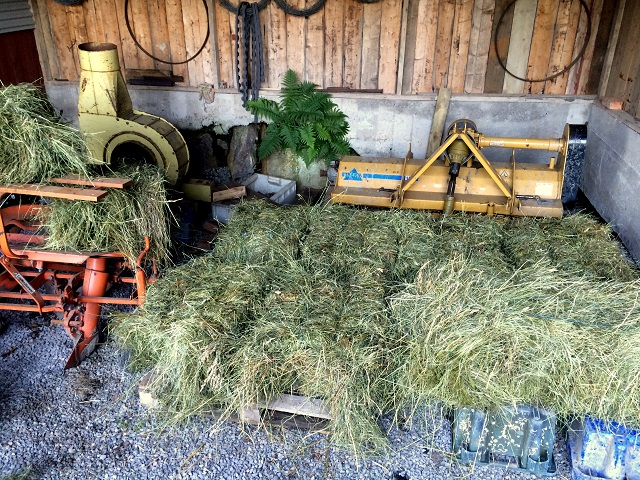 Eftersom det varit uppehåll i två hela dagar, och prognosen inför resten av veckan blir regn, regn, regn, beslöt jag och Holger att vi skulle provköra balpressen. Kopplade på schabraket och körde upp till hässjan vi gjorde för några veckor sedan. Gräset hade förvandlats till näringsrikt hö och var torrt inuti både hässjan och volmarna/krakarna.