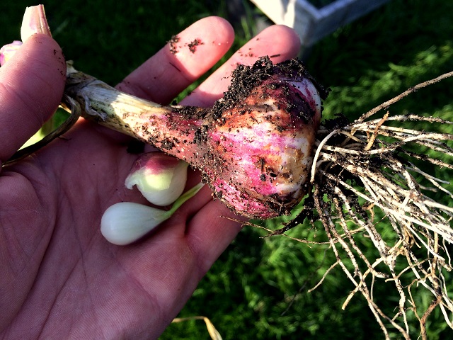 Vitlöken som sattes i november år 2015 har kommit upp nu. Smakar gott.