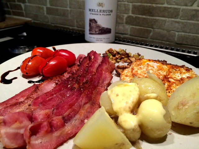 Just det ja….tomaterna, vitlöken, potatisen och äggen smakade bra. Nu saknas bara eget bacon…