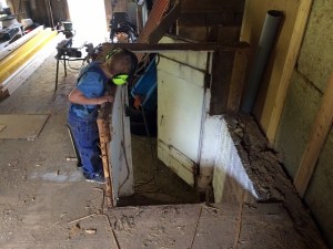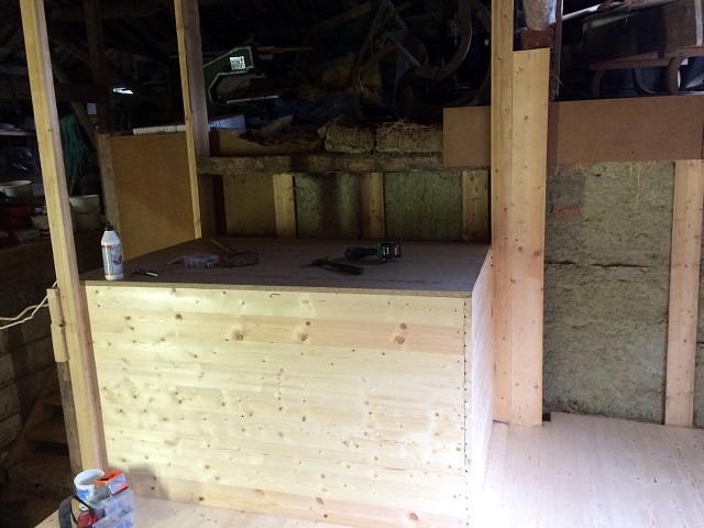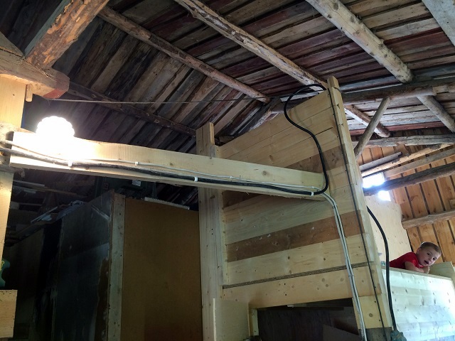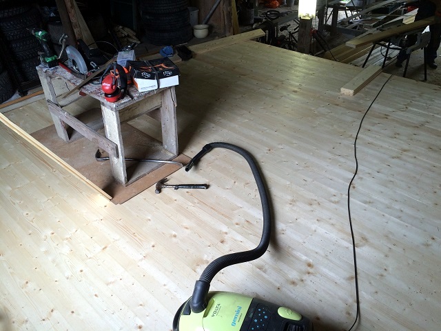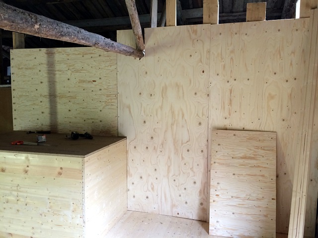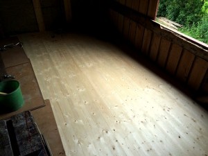 Golvet på spannmålsrännet/taket i stallet behövde bytas ut. Jag hade trampat igenom