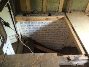 Spannmålsrännet hade även ett tak över sig. Det rev jag nu ner och körde bort. Helt plötsligt blev lagårn mycket ljusare! Den nya trapphuset förlängdes.