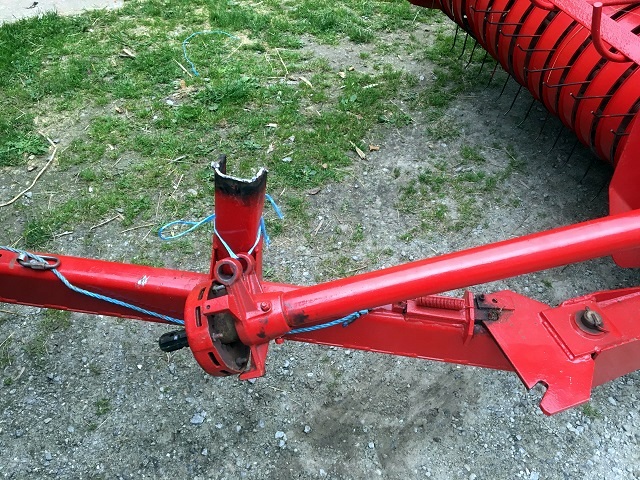 Eftersom det var ont om tid bad jag grannen om hjälp. Vi kopplade balkärran på grannens traktor och jag körde med pressen och grannen före med balkärran. Jag började pressa och hann inte mer än en hö-sträng innan hållaren (”järnet”) som höll kraftaxeln upprätt tyckte att det var dags att ta semester. Järnet böjde sig 90 grader och kraftaxeln snurrade av pressen. Detta var högst förargeligt. Det är tur att grannen är svetsare och vi monterade av lite delar som grannen tog med sig till jobbet nästa dag och förberedde för återmontering.