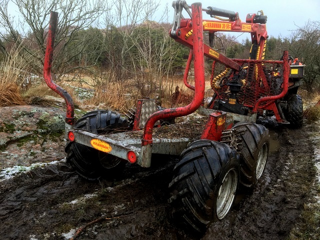 I somras pillade Wiggo sönder brytaren på styret på fyrhjulingen, den brytaren som sköter vinschen fram. Vi har inte haft en, utan två brytare liggande i reserv men jag har hela tiden skjutit bytet framför mig för att jag inte har haft lust att göra det. Men eftersom dagen ändå verkade gå åt reparation av saker så skruvade jag isär huven på fyrhjulingen och demonterade sakerna. Jag fick till och med ihop det igen med bibehållen funktionalitet. Det luriga var att det sitter två brytare på styret, en är för den elektriska ramstyrningen på skogskärran och en för vinschen, och de delar strömkälla mot batteriet. Det gick tillslut. Passade även på att byta olja i hydralmotorn och smörja griplastaren. Detta tog ett par timmar.