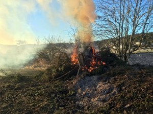 Det tog två dagars eldande innan jag var nöjd med städningen. Brandkåren kom inte denna gången heller. Nu ligger jättegranarna och väntar på att bli kvistade vid foten av bräne-bär’t. Så att man kan få eldat lite till. Det bor en liten pyroman inom oss alla.