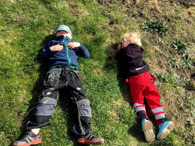 Efter äventyret med potatissättning blev barnen så matta att det var dags för lite vila i vårsolen.