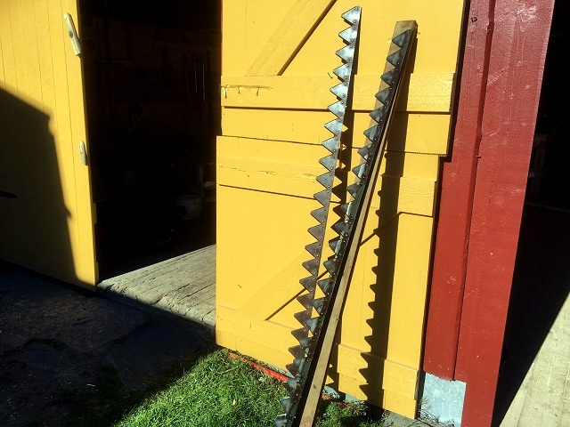 Efter frukost gick jag och Holger ut och slipade knivarna till den ena slåttermaskinen, samt smörjde ordentligt och kollade remmarna.