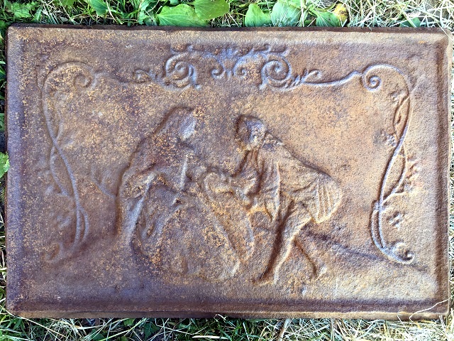 Måtten är 46 cm x 70 cm och vikten ungefär 30 kg. Som jag nämnde såg man endast en rostig platta när jag släpade fram åbäket i dagsljus, men efter en viss rengöring såg den rätt okej ut för att vara ungefär 150 år gammal.