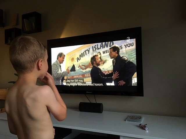 Men det var då. Dagen innan simskolan tittade jag och Wiggo på den fina dokumentären Hajen, den utbildningsfilm som gjorde att jag nästan en hel sommar knappt vågade gå i vattnet.