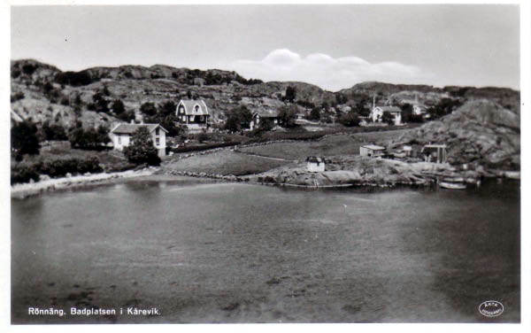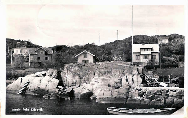 Avslutar med en sista gammal bild från Kårevik, anno 1968. Morbror bor i det vita huset till höger i bild. Flytbryggan börjar vid badstegen till vänster i bild. Från badstegen till fören av ekan går idag en betongbrygga.