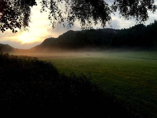Jag har alltid tyckt om att gå upp tidigt på morgonen. Det är lugnt, det är rofyllt. Världen vaknar till liv. Det är dagg i gräset. Luften känns annorlunda att andas. När jag går ner mot Kalvhagen får jag alltid minnesbilder från när jag var liten, när jag tillsammans med morfar gick ner för att flytta tjurarna. Att ett minne kan etsa sig fast så starkt, fast det nu är runt 35 år sedan jag följde med första gången. Ljudet av släggan som slår ner spettet i marken så att tjurarna tjudras om mot nytt gräs. Rasslet utav kedjorna från grimman. Vattenkoppar som fylldes. Frustandet från kräga’. Fåglar som kvittrar.