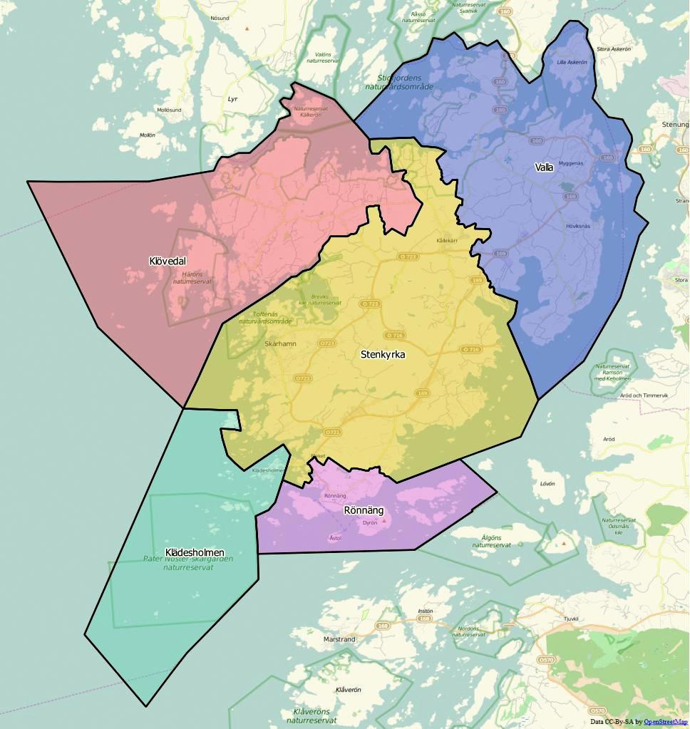 ”…Tjörn äger en widd af omkring 1 1/5 qwadratmil, och har från ålder utgjort ett prestgäll med socknarne Stenkyrka, Klöfwedal och Walla. Naturen liknar kustens i allmänhet, och ön synes wara en i yngre tid ur wågorna uppstigen ögrupp af mindre skär och holmar. De hafsarmar, som fordom skilde dessa småöar ifrån hwarandra, äro nu upplandade till stora och utomordentligt fruktbara dalar…”