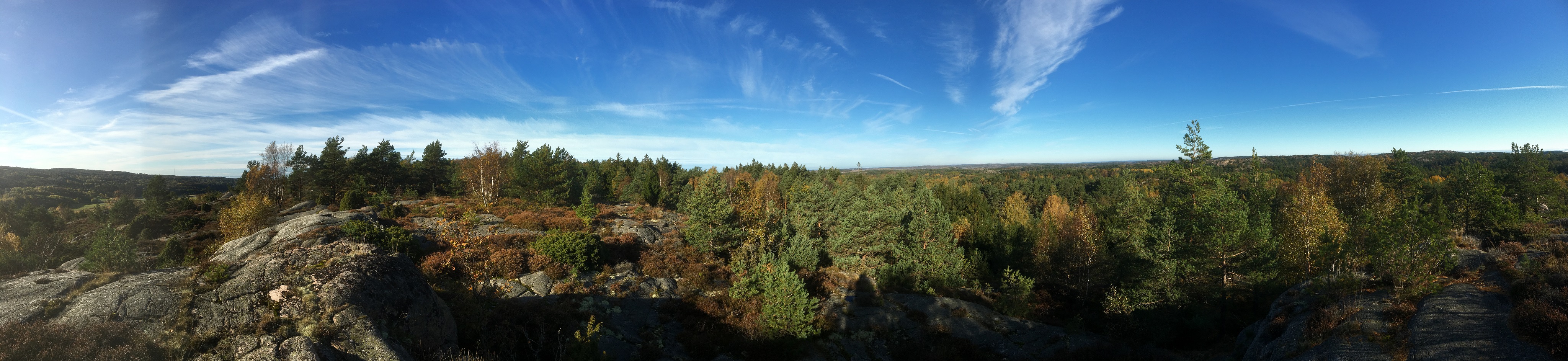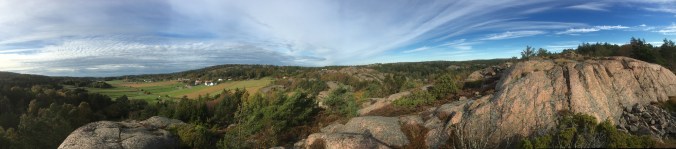 Panorama över Kwernekoll’n. Det finns ingen farbar väg hit upp, så man körde säden med häst till Mjölkebacken och bar lasten den resterade vägen.