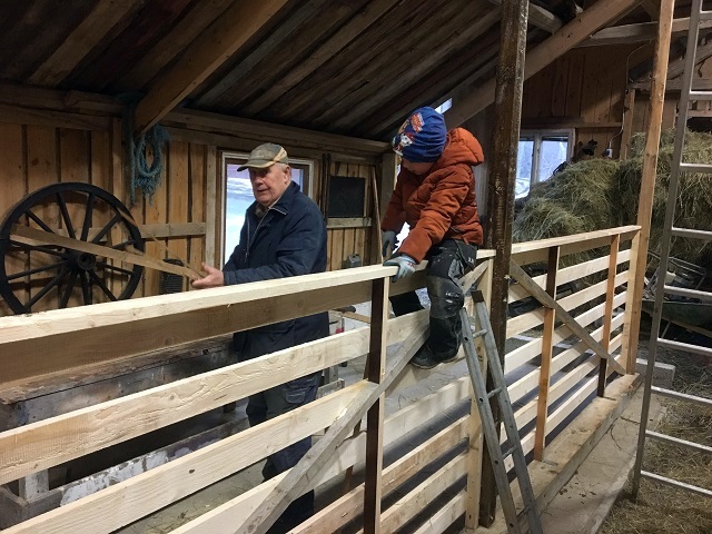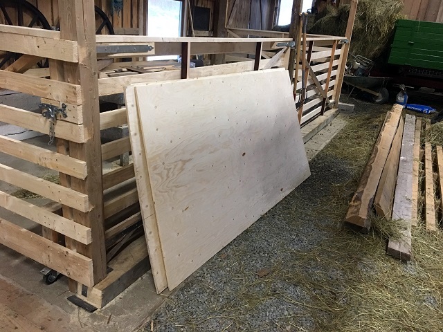 Diskussionerna gick höga gällande om man skulle ha det enkla valet att investera i järngrindar för att bygga ihop en fålla på den nya betongplattan, eller om man skulle ta det billigare alternativet genom att bygga själv i trä, med egensågat virke. Tillslut föll valet på det billiga alternativet. Visserligen är det mera jobb att såga och förädla virke, men det kanske kommer att se snyggare ut på något sätt? Blir det inte bra kan man ju alltid ta fram motorsågen och köpa järngrindar i efterhand.