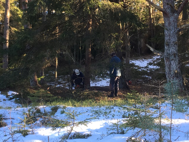 Det frös inte till ordentligen förrän mitten av januari, och då fick man passa på att jobba en del på markerna. Som tur (?) är finns det en del projekt och platser att välja på, så man slipper få tråkigt genom att såga på samma plats hela tiden. En annan fördel är att ha en otroligt snäll sambo, en otroligt snäll mamma samt mammas särbo. Sambon kan ta igen sig medans särbon Claes passar barnen och morsan lagar maten medans jag och Holger är ute och arbetar.