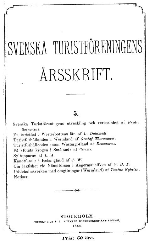 vid dess nedre kant, som snart plägar göra ryggen öm, äfven om den vid profvandet förefaller bra, kan fästas en liten påse i dynform, i hvilken man stoppar hö, mossa eller — smutsigt linne och strumpor. Är renseln försedd med s. k. mes (praktiskt!), placeras dynan vid mesens nedre ända, men behöfves då mindre. Norrländska och finska näfverkontar äro mycket praktiska såsom ränslar. Tag med så litet som möjligt, t. ex.: ett par Jsegerskjortor, en kulört skjorta, några par strumpor, några näsdukar och kragar, ett par reservbyxor; kam, klädborste, tvål och handduk; nål, tråd och knappar; linnelappar, cerat och en liten ask borsyra eller borsyreplåster (för fotsår) sker vandringen i mycket myggrika trakter, bör ett par kubiktum beckolja (apoteksvara) medtagas; slutligen de kartor, som behöfvas (topografiska kårens kartblad, där de äro färdiga) och några brefkort. Kompas (hur enkel som hälst), anteckningsbok m. m. bäres i fickan.