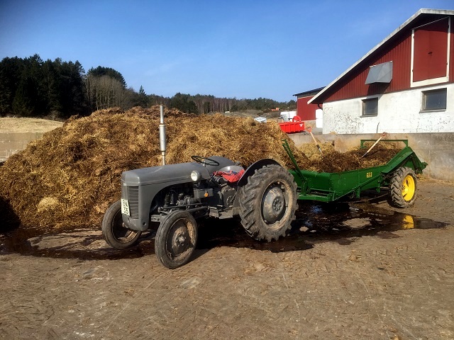 För några år sedan erhöll jag en stallgödselspridare, m/ äldre, genom grannens försorg. Efter att ha gjort i ordning spridaren och skaffat nya däck till den, var det äntligen dags att – utrustad med en styck morbror Holger och två stycken grepar- lasta gammal hederlig koskit. På går’n är korna borta sedan länge, men det är tur att det finns en granngård med kräg’ i närheten, endast 8 minuters körtid, enkel väg, med en gammal Grålle från 1956.