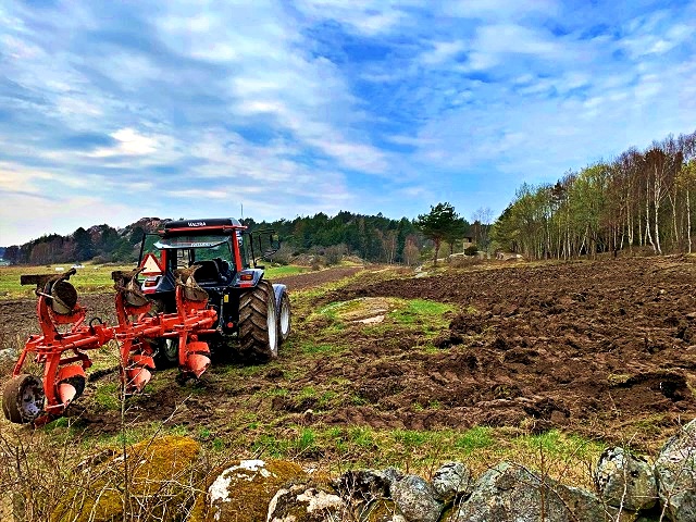 Även Wiggos hage i Frökärrsmyra/Hällsdalen fick sin beskärda del av plogen. Återigen blev jorden vänd både höst och vår. Det är roligt att plöja, sen blir även ogräset bekämpat på mekanisk väg.