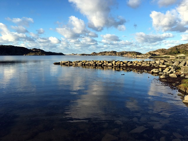 Morgonen bjöd på grått väder, lätt dimma och friskhet. När barnen (Wiggo och Elin) samt Holger och jag kom ner till båtplatsen hade det spruckit upp och sjön var kav lugn. Mina tankar gick till hur gôtt livet kan vara ibland, medans jag nynnade på Evert Taubes ”Inbjudan till Bohuslän”, som blev publicerad första gången 1943 i samlingen ”Ballader i Bohuslän – diktade, tonsatta och illustrerade av Evert Taube”;