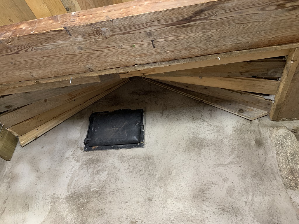 Taket sågades upp och skorstenen murades upp genom hålet.