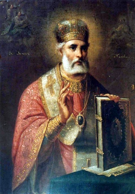 Nicolaus är grekiska och betyder ”folkets besegrare”. Denne var en from biskop i Myra i Mindre Asien, död 343. Under namn av S:t Niclas tillber ryssarna honom som sitt skyddshelgon och bär ofta på sig hans bild av silver eller koppar. I Sverige har S:t Niklas blivit bekant genom ryska fångar. Stockholms storkyrka är invigd till hans minne och kallas Nicolai kyrka. I Forshems kyrka på Kinnekulle finns hans bild huggen i sten.