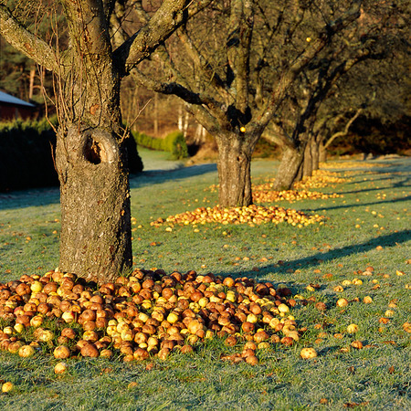Ömtåliga spaljéträd till exempel aprikos, vinterpäron och körsbärsträd, planteras åt söder, skuggas mot solen med luckor, rörmattor eller granris. Smultronsängar täcks med granris eller halmströ, ifall stark köld inträffar på barmark. Är marken däremot snötäckt, kan täckning uppskjutas.