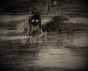 -”Vart i Guds namn bär det hän?”Som han hade sagt detta, föll han av och hamnade mittuti en kile, Breviks kile i västra ändan av Tjörn. Om morgonen fick folk höra, hur han ropade, för han kunde inte komma loss, för han låg sjunken till midjan i den våta leran. Då de fick upp mannen, var hans byxor brända mellan benen, så det hade varit varmt på den hästen….”