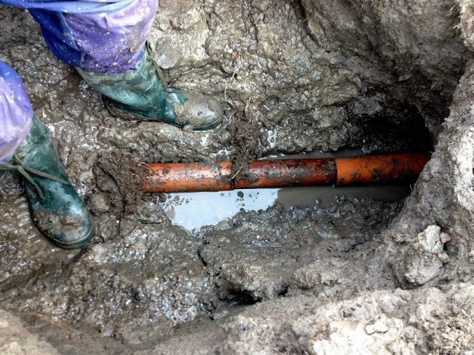 År 2012 syntes det att en dränering hade stoppat upp. Man ser sådant lättast på våren och sommaren eftersom grödan alltid gror friskare och bättre på de våta platserna. Det var bara att hämta en spade och sätta igång att gräva. Wiggo var vid denna tid 1½ år och var med ute på fältet och gjorde så gott han kunde. Visserligen var man förr tvungen att dränera om man ville livnära sig på bonderiet, men jag kan inte låta bli att imponeras över att man grävde så långa diken med det djupet som dräneringen låg på, ungefär 100 centimeter.