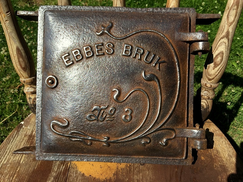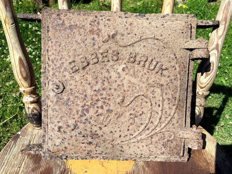 Återigen har en gammal attiralj släpats ut från »koghuset». En gammal kamin- eller spislucka från Ebbes bruk. Angripen av rost stod den sorgsen i ett hörn och glodde på mig.