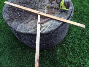 Jag kör lite till innan jag märker att duken inte snurrar längre. Jaha, läkten som håller kapell-stropparna har blivit avbryten där kroken till stroppen sitter. Klent trä, gammal duk. Duk-rullarna snurrar men inte duken. Tar tag och rycker till…duken snurrar ett varv, den avbrytna läkten bromsar upp duken. Jag hämtar en hammare och klappar till läkten så att den går av, tar bort det avbrytna träet och lägger i traktorn. Duken snurrar bättre nu men man måste vara snabb att dra igång den för hand när den stannar, snabbt in i traktorn och få upp varvet.