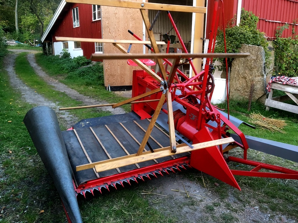 För er som inte vet vad en självbindare är för något så är det en skördemaskin för stråsäd. Innan självbindaren fanns det en apparat som hette självavläggare – men det är en annan historia. Självbindaren utvecklades under 1800-talet och kom att ersätta lien, slåttergillena och folket som band kärvar. Från början drogs självbindaren av hästar och sedan utvecklades traktordriften. Från 1950-talet och framåt ersattes både självbindaren och tröskverket av föregångaren till den moderna skördetröskan. Ena sidan (vanligen den högra) sticker ut en bit utanför hästen/traktorn och är försedd med en knivbalk, liknande slåttermaskin/slåtterbalk. Knivbalken skär av stråna och ovanför kniven roterar en haspel (skovel) långsamt. Haspeln böjer ner stråsädden mot slåtterkniven så att de kapade stråna kan läggas ner på slåtterbordets transportband. Säden förs därefter till en knytare som sätter ett snöre runt säden så att det blir en kärve. Kärven kastas sedan ut från maskinen.
