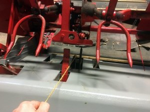 Jaha, det låter ju enkelt. Skall man stå på höger eller vänster sida om bindaren? Det logiska vore vänster sida så jag körde efter det. Sisalgarnet stoppade jag i garnburken och drog fram garnet till första hålet. Det var lätt att hitta. Andra hålet var också lätt att hitta.