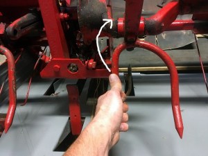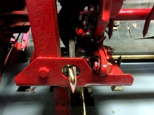 Jag fortsatte med att inspektera dreven och kugghjulen för att klura ut vilka axlar som gick till vad och hur maskinen fungerade. Instruktionsboken konstaterar att ”På grund af bindarens enkla uppbyggnad är det lätt att utbyta de flesta reservdelarna utan vägledning. Ett undantag är kopplingshjulet (5380 fig.59)…”