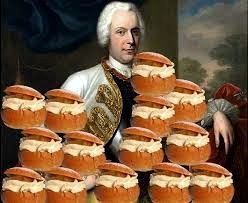 En utav våra kungar – Adolf Fredrik (1710 – 1771) – var en man före sin tid. Egentligen var han som vilken modern man som helst; han var en lat jävel som på grund av sin lathet led av hemorojder (gyllenåder). Han älskade att läsa serietidningar, äta mat och dricka sprit, han hade en nördig hobby (sin svarv), han hade en gedigen porrsamling och var en toffelhjälte af Giuds nååde, så flegmatisk att han uppfattades som svagsint och lätt sinnesslö och torde passat som partiledare i vilket modernt riksdagsparti som helst. Men mer om Adolf Fredrik liv & leverne, död och obduktionsprotokoll längre ner, först ska vi prata om fettisdagen och semlan.