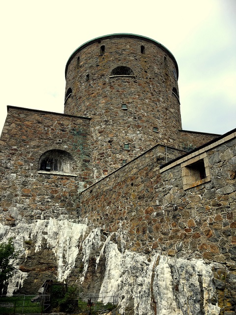 När man kommer in vid entrén och kaffestugan – tegelbyggnaden med rött tak i ovanstående bilds högra hörn – lättas sinnet upp på både stora och små. Dels kan man ta roliga fotografier och dels står det rejäla artillerikanoner till beskådande. När man sedan träder in genom porten till den yttre borggården kan den vetgirige fråga om fästningens historia, varmed den påläste autodidakten svarar. Annars kan man (gratis) slinka med i bakvattnet på någon turistgrupp, bestående av norrmän, danskar, svenskar, tyskar och en och annan amerikan ( varpå amerikanen alltid förundras över hur otroligt grymma, ondsinta och uppfinningsrika vi svenskar var förr).