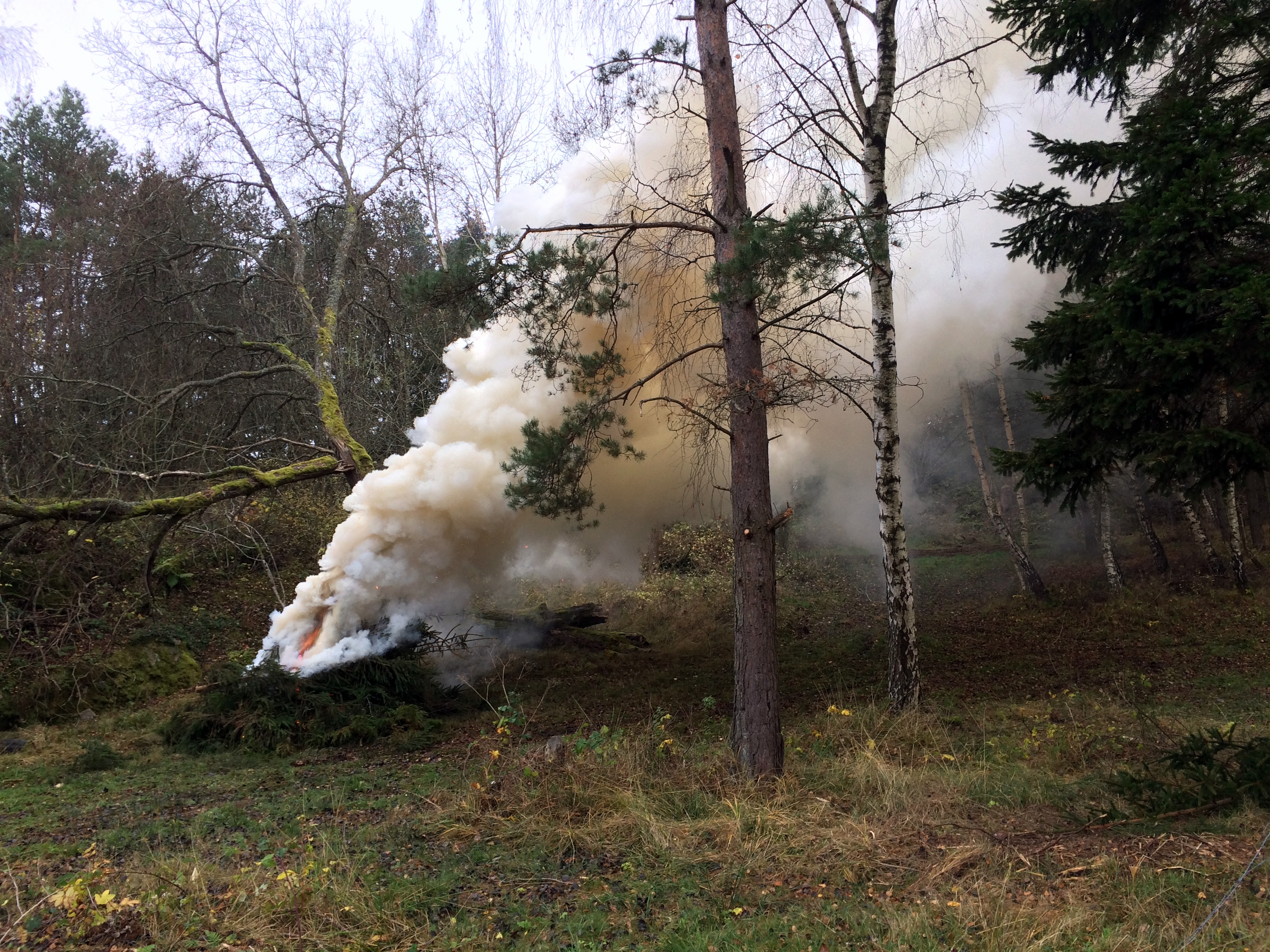 Sedan så matar jag elden ordentligt med granegrenar, enebuskar eller dylikt, tills man får en bra glöd. Det är en del jobb, men rent och snyggt blir det!