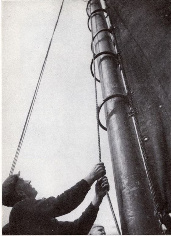 Långt ute på vattnet guppade andra små båtar, stadde i samma ärende som vi — ynkliga små skal ute på den böljande ytan mellan en omätlig himmel och ett stort djup. Och dock hade vi vid närmare betraktande en bra båt med en stark motor och stort, svällande nytjärat segel. Tre handfasta män var besättningen. Så siktade vi den första »välen», ett stort korkflöte med en liten vit vindsliten flagg. Seglet halades ned och medan den ene av Rutgerssönerna skötte motorn, ställde den andre fram en fiskeback, högg flötet i flaggpinnen och började hala in. Garnet rann över relingen upp i backen, och snart började silvret blänka. Mest var det skäddor av olika slag — rödspottor, skrubbor och gapare — men också torsk, kolja och en och annan makrill.